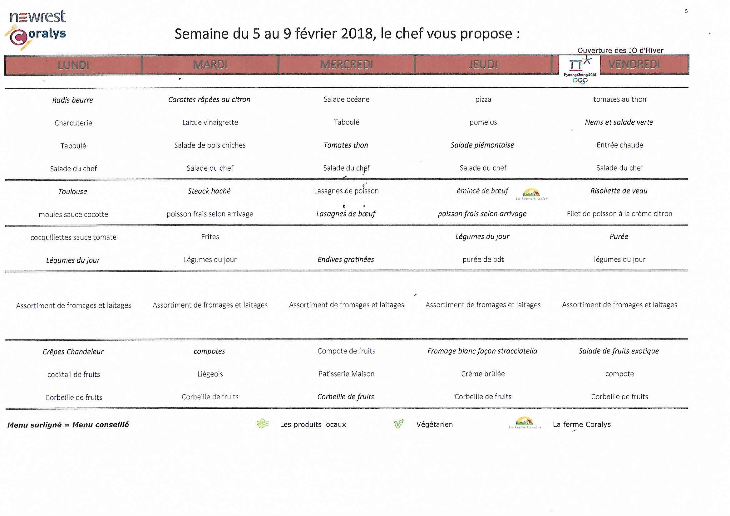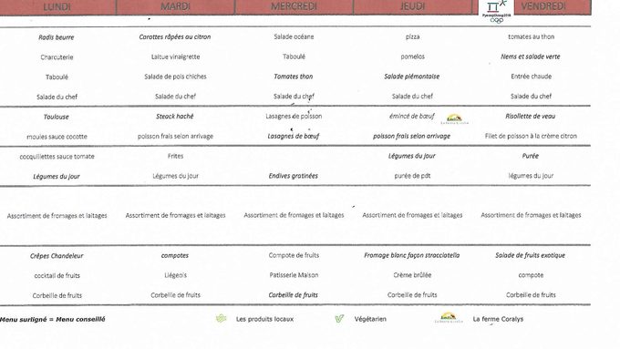 Menu de la semaine